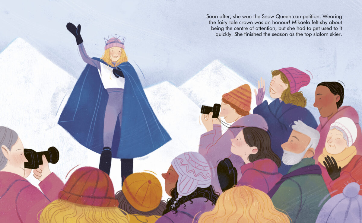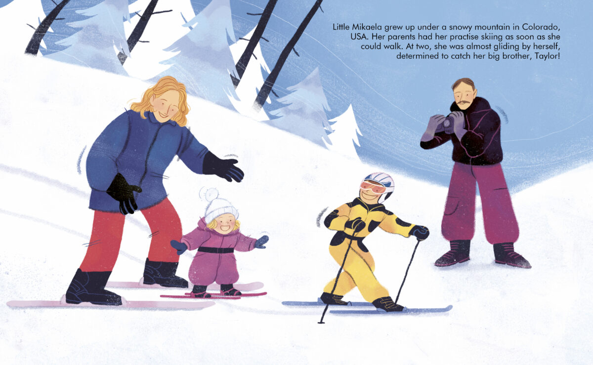 Mikaela grew up under a snowy mountain in Colorado, USA. Her family were all big fans of skiing and by the age of two she was already gliding all by herself, determined to beat her brother! This was to be a theme throughout Mikaela’s career as, inspired by skier Heidi Voelker’s message as a junior skier she added the acronym A.B.F.T.T.B to her helmet: ‘Always Be Faster Than The Boys’!